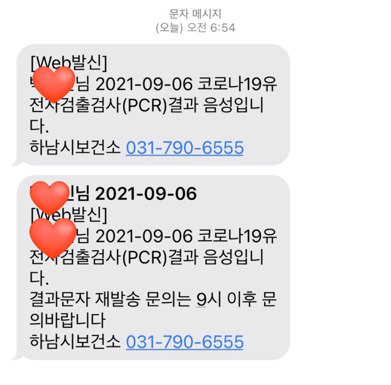 이와중에 전날 받은 코로나 검사 결과가 나왔다